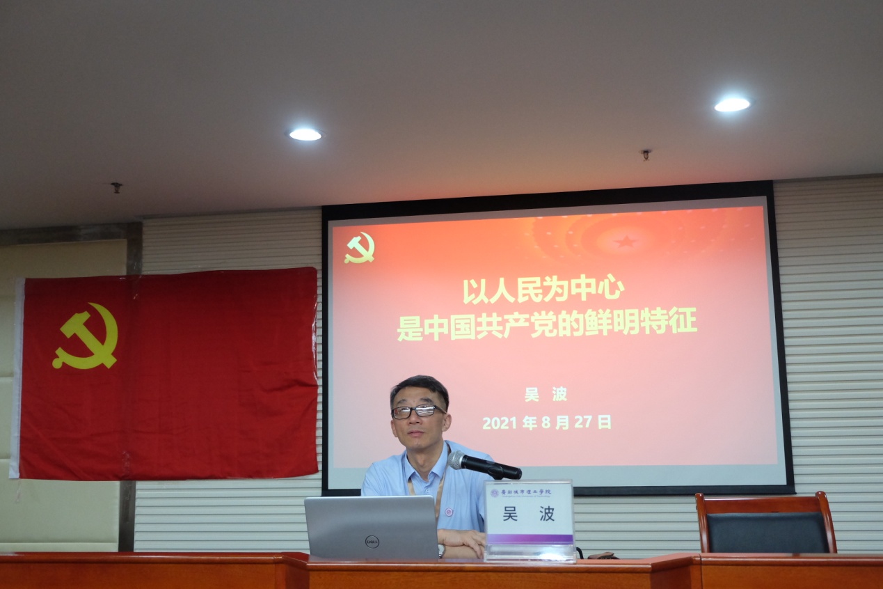 吴波围绕“党的人民立场”“践行人民立场”“对比西方世界”三方面内容,结合自身的学习和领悟,回顾了中国共产党建党百年来取得的辉煌成就。他通过分析习近平总书记“以人民为中心的发展思想”“全体人民共同富裕取得更为明显的实质性进展”等讲话精神指出,人民立场是中国共产党的根本政治立场,是马克思主义政党区别于其他政党的显著标志,带领中国人民创造幸福生活,是中国共产党矢志不渝的奋斗目标。