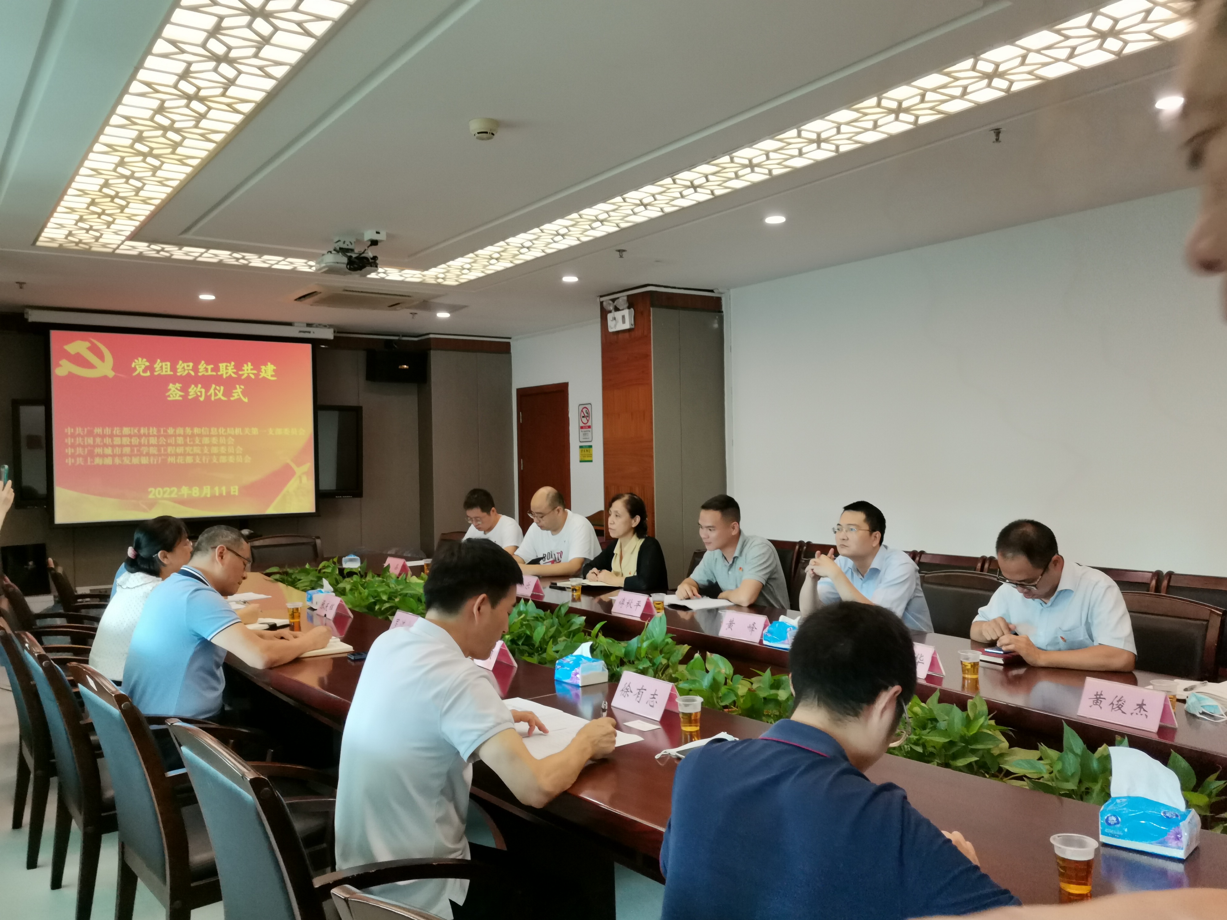 本网讯(记者 尚云鹏)8月11日上午,中共广州市花都区科技工业商务和信息化局机关第一支部委员会、中共广州城市理工学院工程研究院支部委员会、中共国光电器股份有限公司第七支部委员会、中共上海浦东发展银行广州花都支行支部委员会党组织红联共建签约仪式在花都区科工商信局隆重举行。工程研究院党支部书记、工程研究院院长马乐带队参加签约仪式。